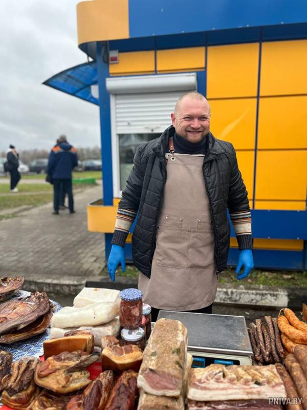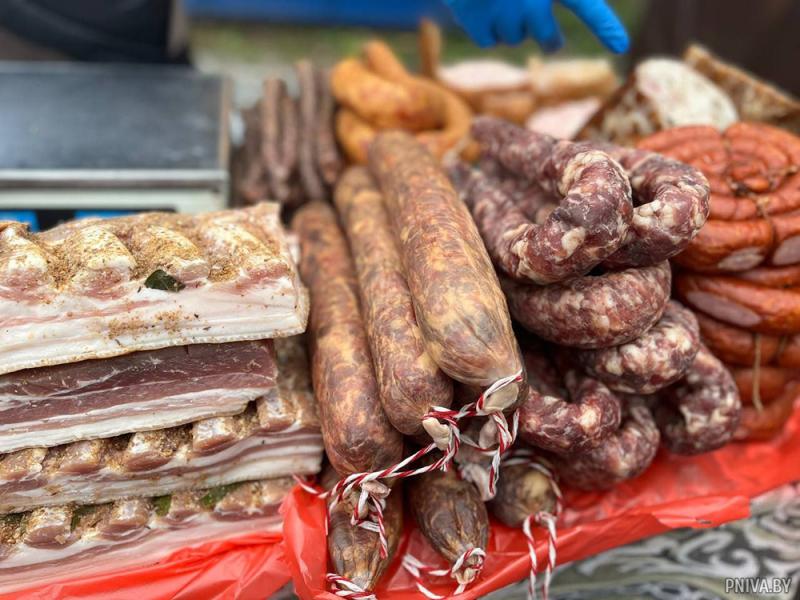 А владелец личного подсобного хозяйства Иван Лолышев, который занимается производством мясной продукции из свинины, представил на ярмарке в Буйничах и сало, и колбасу, и тушенку.
