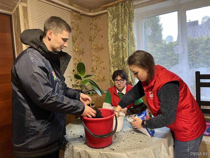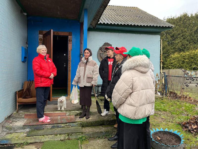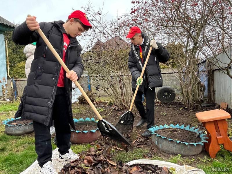 Настоящий трудовой десант высадился в агрогородке Кадино. Активисты ОО «БРСМ» навестили ветерана педагогического труда Ольгу Луговскую, посвятившую детям более 50 лет жизни. Ребята проделали большой фронт работы: сгребли листву, накололи и сложили дрова, собрали ягоды рябины, облагородили плодовые деревья, перенесли зерно. А в доме помогли хозяйке с пересадкой комнатных растений.