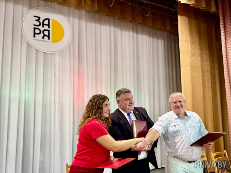 Именно в Доме культуры «Зари» свершилось главное событие дня. Ректор Белорусского государственного университета пищевых и химических технологий (БГУПиХТ) Максим Киркор, генеральный директор «Агрокомбината «Заря» Екатерина Заровская и директор СШ №39 г. Могилева Александр Соловей подписали трехсторонний договор о сотрудничестве. Этот документ открывает для учеников 39-й школы новые перспективы: приоритетное поступление в БГУПиХТ по целевому набору, стажировки на современном производстве «Зари» и поддержку предприятия.