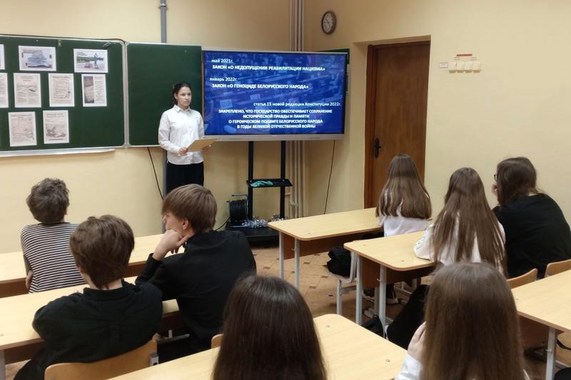 Сегодня в сельской СШ, по словам учителя истории и руководителя музея Ольги Григорьевой, прошли диалоговая площадка «Геноцид белорусского народа: никогда больше...» и тематическая выставка «Красный Берег: украденное детство».