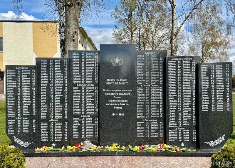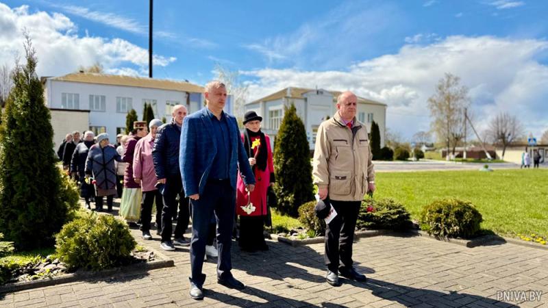 Торжественные мероприятия начались с возложения цветов к памятнику воинам, павшим в годы Великой Отечественной войны. Руководство сельисполкома, районных профсоюзных и ветеранской организаций почтили память героев, чей подвиг подарил нам возможность мирно жить и работать на родной земле.