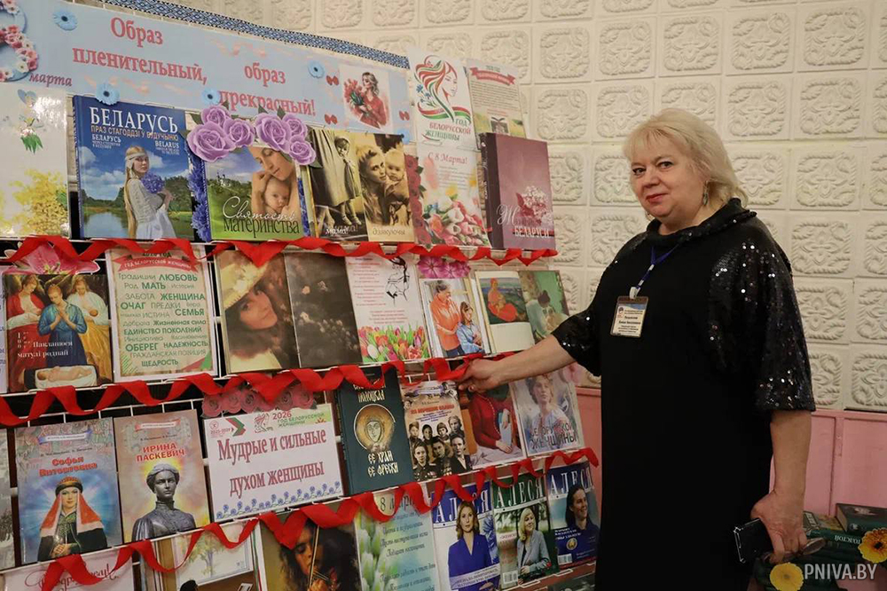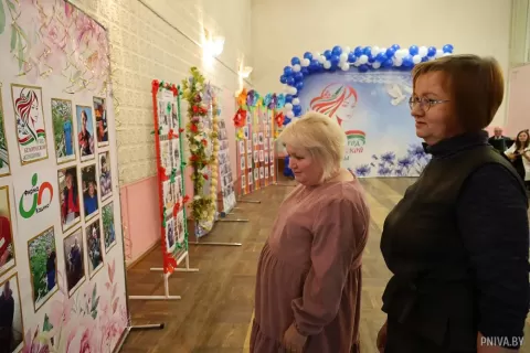 В фойе уже витала праздничная атмосфера: звучал оркестр, были оформлены фотовыставки женщин района, выставка детских творческих работ Могилевской районной школы искусств им. Л.Л. Ивановна, работниками библиотечной системы подготовлена экспозиция книг и журналов, посвященных женщинам.