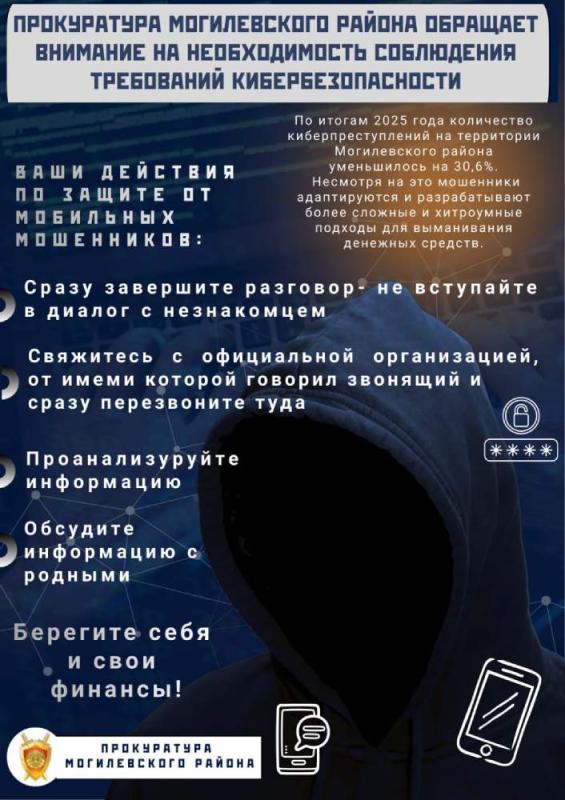 По итогам 2025 года количество киберпреступлений на территории Могилевского района уменьшилось на 30,6%. Несмотря на это мошенники адаптируются и разрабатывают более сложные и хитроумные подходы для выманивания денежных средств.