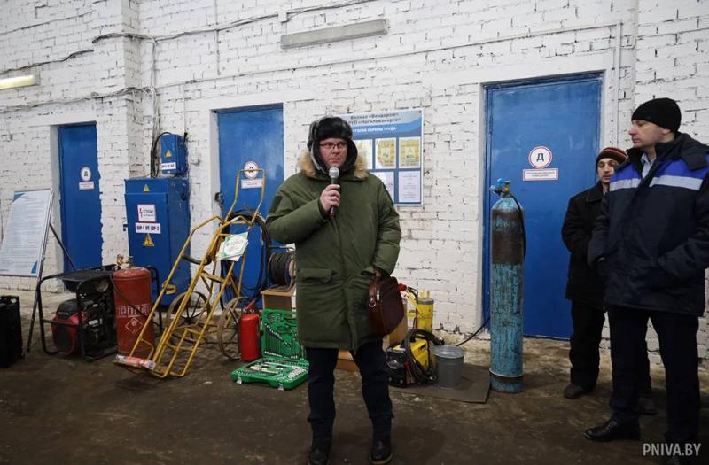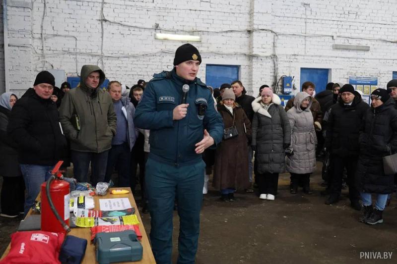Во время практической части мероприятия рассматривалась организация охраны труда на объектах машинного двора филиала принимающего предприятия. Спектр рассматриваемых тем был обширен – от обеспечения работающих средствами индивидуальной защиты и выпуска техники на линию до подготовки сельскохозяйственной техники к весенне-полевым работам и контроля работников на предмет нахождения в состоянии алкогольного, наркотического или токсического опьянения. Во время обсуждения говорилось и о правилах работы со сварочным аппаратом, грузоподъемными механизмами, электрооборудованием. Что же касается возможностей противопожарной техники, то сотрудниками Могилевского РОЧС, принимающими участие в семинаре, была реконструирована демонстрация тушения очага пожара огнетушителем.