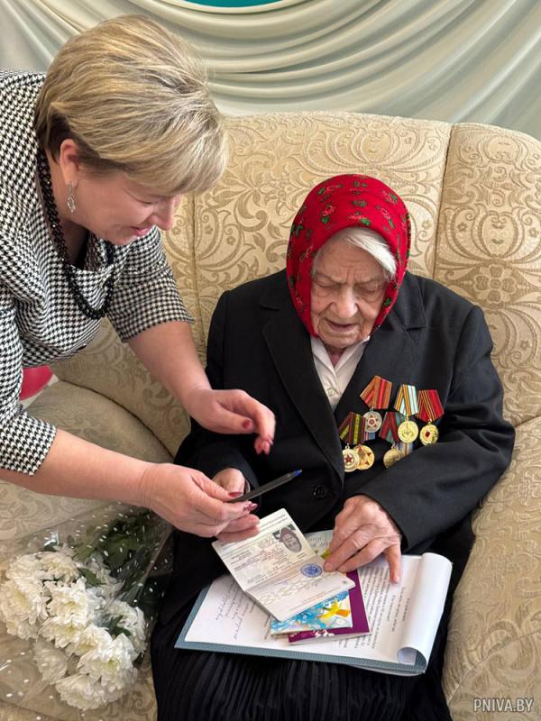 Важным моментом праздника стало вручение нового паспорта. С этим знаковым событием юбиляршу поздравили начальник управления по гражданству и миграции УВД Могилевского облисполкома полковник милиции Петр Симончик и начальник отдела по гражданству и миграции управления внутренних дел администрации Ленинского района г. Могилева майор милиции Татьяна Пташинская.