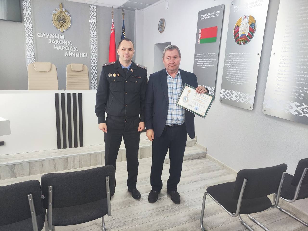 Членам добровольных дружин ОАО «Полыковичи» и ООО «Птицефабрика «Романовичи» в торжественной обстановке были вручены Благодарности Могилевского РОВД за проявленную активность в охране общественного порядка.