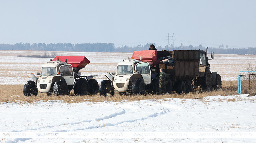 И снег не помеха. На полях Могилевского района идет подкормка многолетних трав
