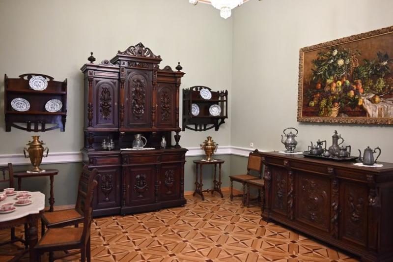 Также пополнились новыми экспонатами старины уже существующие интерьерные залы дворца - столовая, приказчицкая, диванная и буфетная. "В буфетной, например, раньше вся мебель была сделанной в современности, но под ту эпоху. Экспонатов тоже было не много. А теперь этот зал полностью модернизировали - его наполнили антикварной мебелью, дополнили деталями. Из того, чтобы было в буфетной до этого, осталась одна картина", - отметил Владимир Мищенко.